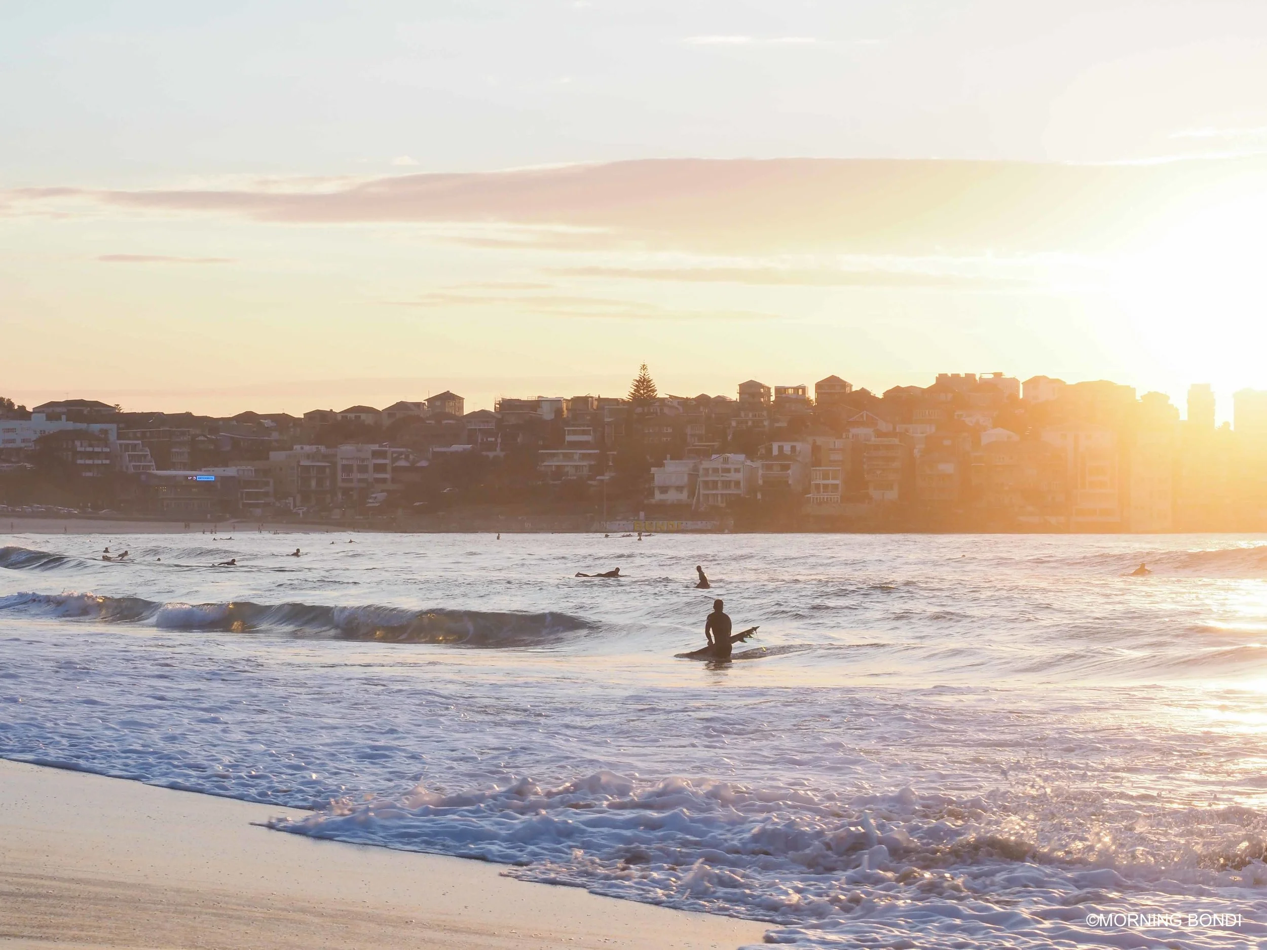 6am, the sun is rising above the tallest building in North Bondi